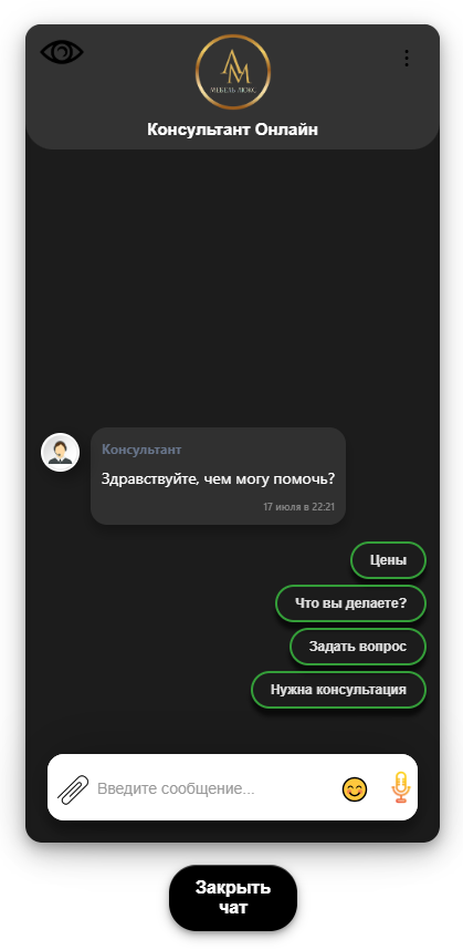 Разработка онлайн-чата для сайта под ключ с возможностью общения текстовыми, голосовыми сообщениями